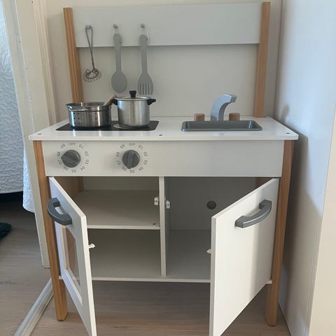 Säljer ett jättefint och välvårdat marknadsstånd i trä från det populära märket Kids Concept. Perfekt för timmar av kreativ lek där barnen kan sälja allt från låtsasfrukt till hembakade bullar!