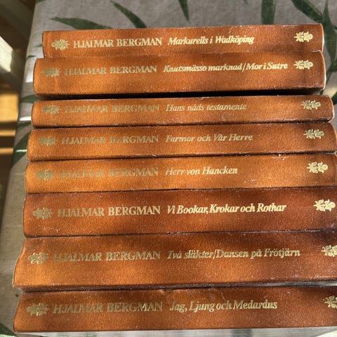 MÄSTARNA: 25 skinnband med gulddekor av klassiska författare allt från Charles Dickens, till Joseph Conrad, Gustav Flaubert och August Strindberg. Böckerna olästa. Alla författare presenteras utförligt i ett separat lexikon. Pris: 1000 kr vid snabb affär. Hämtas centralt i Västerås.