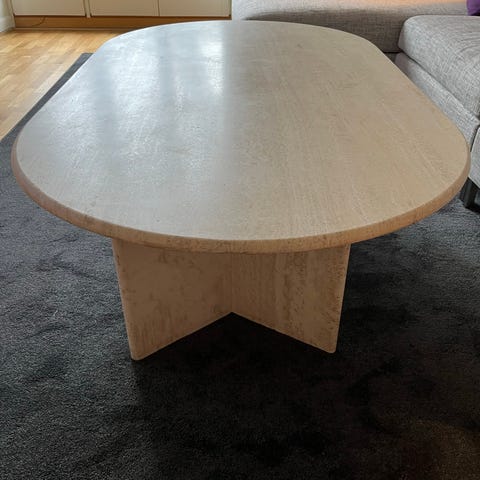 Stilrent och stabilt soffbord med marmorfinish.