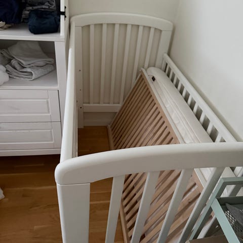 Vit spjälsäng som endast är använd till barnbarnet fåtal ggr. Som ny!