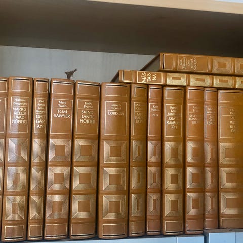 Klassiker allt från Maxim Gorkij, James Joyce till Knut Hamsun etc. i 21 olika skinnband. Pris: 600:- vid snabb affär. Kan hämtas centralt i Västerås.