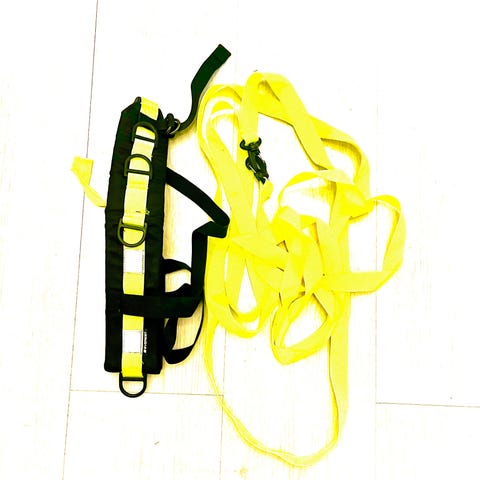 Fästes runt midjan och benen på barnet för ett säkert grepp med jämnt fördelat tryck. Linan kan fästas vid olika punkter på selen för varierande rörelsefrihet/svårighetsgrad. Använd 1 vecka med gott resultat, tjejen kan nu åka själv i blå och röd backe.