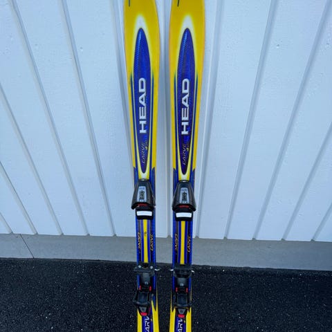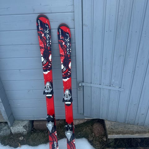 Head Jr. alpinskidor med bindningar, i använt skick. Skidorna är avsedda för barn.