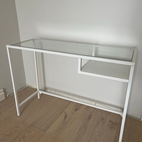 Skrivbord glas och metall vitt Ikea Vittsjö
