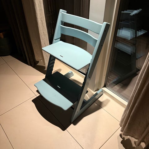 Stokke Tripp Trapp matstol i svart trä med justerbar sitt- och fotbräda. Stolen är utrustad med säkerhetsbygel framtill i trä. Sittdyna i ljus textil ingår. Passar som matstol för barn vid matbordet och kan anpassas i höjd efter barnets storlek genom att flytta sitt- och fotplatta i olika lägen.