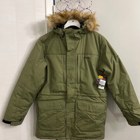 Helt ny med lapp. En fin vinterjacka av bra kvalite. Nypris 1000kr. Avtagbar luva och avtagbar fuskpäls, justerbar vid midjan.