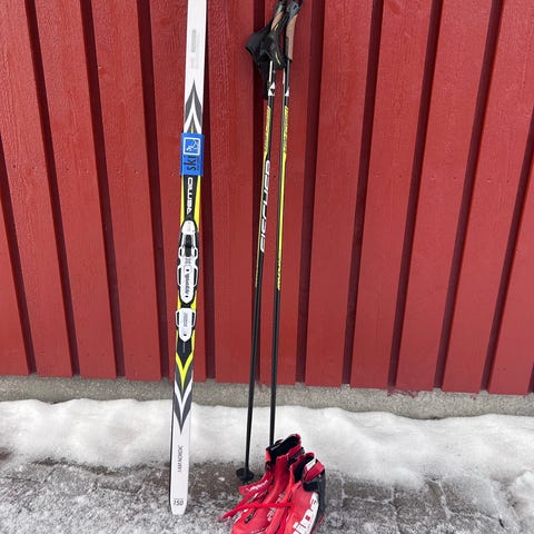 Äldre Madshus vallningsfria längdskidor ca 155cm 100kr