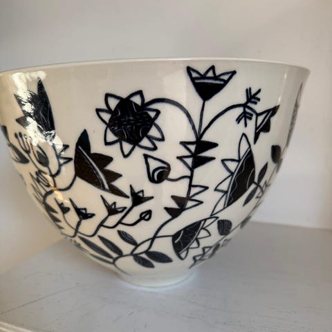 Handmålad keramikskål i traditionellt marockanskt svart/vitt mönster. Diameter 18 cm.