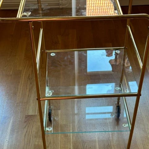 Serveringsvagn i krom och glas på hjul