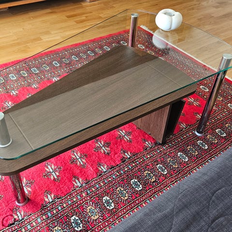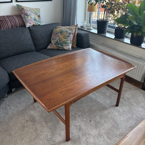 Ett fint soffbord från 60 talet med dubbla utdragsskivor som är 37x48 cm. Det framgår av bilderna.
