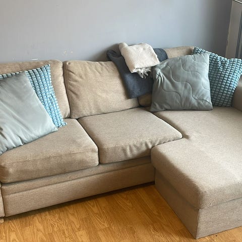 Vi säljer vår bäddsoffa då vi inte längre får plats med ny bostad. Förekommer enstaka fläckar från bland annat tuschpenna. Inga djur finns i hushållet. Bäddmadrass bör köpas ny, finns många fläckar på den.