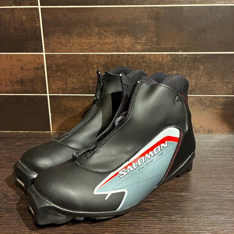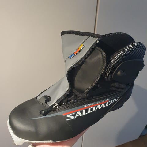 Längdpjäxor för klassisk åkning från Salomon. Storlek 40. Använda men i bra skick. Äldre modell på bindning. Innersula saknas, men går lätt att köpa i sportaffären.