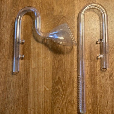Lily Pipes i glas från Aqua Rebell. Ena fästet till sugkopp saknas på ena, men sitter fast ändå. Passar slang 16/22. Sugkoppar ingår ej