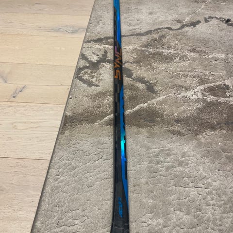 Ishockeyklubba för senior, vänsterfattning. Klubban har standardlängd för vuxna spelare och är avsedd för användning på is, exempelvis vid träning eller match. Passar för spelare som skjuter med högerfattning. Exakt märke och modell framgår inte av bilden.