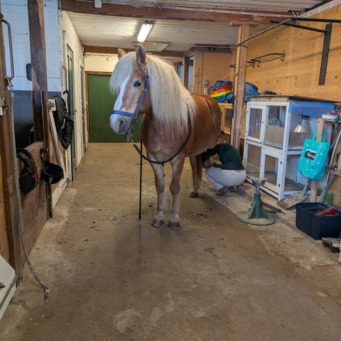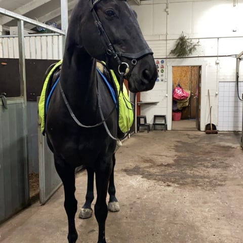Eken är ett varmblods sto på ca 165cm. Hon är väldigt snäll i all hantering kring dusch, verkning, borstning och sadla/tränsa.