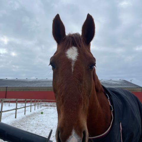 Står just nu på box men är väldigt van vid lösdrift. Har fri tillgång ute, Låg i rang. Går i blandflock