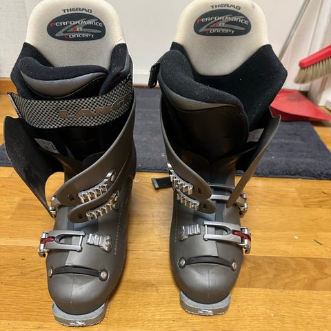 Salomon Teneighty 26/26,5 alpina pjäxor 305 mm grå svart alpina pjäxor i storlek 26/26,5 med sulmått 305 mm. Storleken motsvarar ungefär 40 2/3 - 41 1/3 i vanliga skor. Skalet är i huvudsak grått med svart skaft och detaljer i rött och silver. Pjäxorna har fyra justerbara spännen och powerstrap upptill för stabil passform. Modellen är anpassad för alpin skidåkning och har flex 85.
