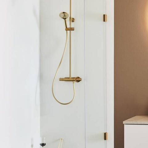 Säljer en helt ny och oanvänd Doro Frost DV 115 duschvägg i klarglas med svart väggprofil.