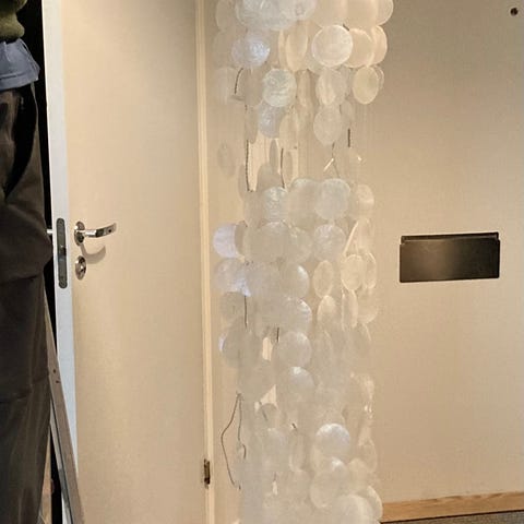 Ca 150 cm lång. Perfekt att hänga i takkontakt med en glödlampa.