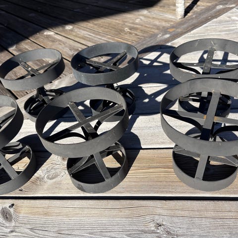 Växtstöd i form av runda spaljéringar i svart plast. Ringarna monteras ovanpå varandra för att skapa ett stöd för klätterväxter eller högväxande plantor i kruka. På förpackningen visas hur ringarna staplas för att bygga ett vertikalt stöd. Passar till Clas Ohlssons tomatkruka Artikelnr: 41-2832