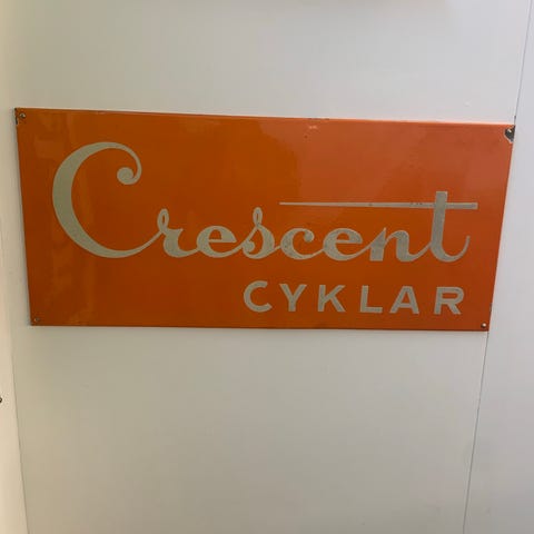Monark skylt Emaljskylt För Svenska cyklar röd triangelformad plåt