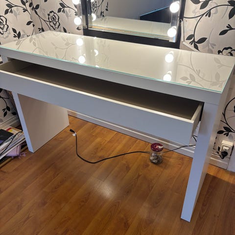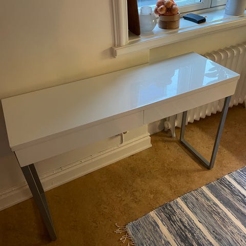 Sminkbord i blank glans med 2 lådor lite skavanker finns men helt ok skick