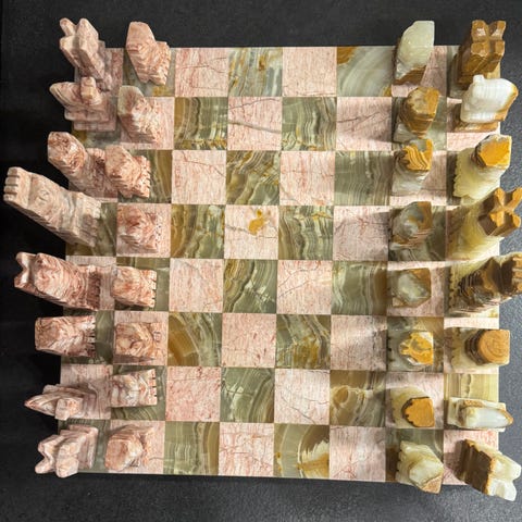 Har du ett sådant set med pjäser till salu, med eller utan schackbräde kontakta mig här så kan vi säkert komma överens på något sätt.