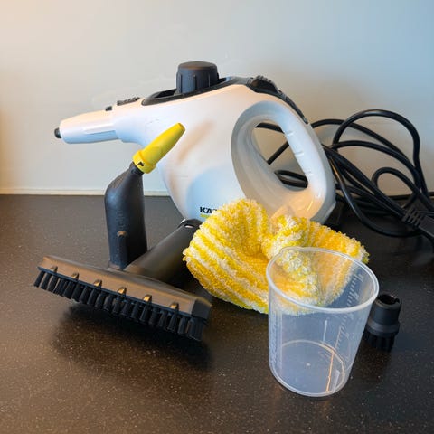 Kärcher ångtvätt i gul färg. Enheten har hjul, bärhandtag och avtagbar ångslang med handtag. Medföljer gör förlängningsrör och golvmunstycke som passar för rengöring av hårda golvytor samt andra släta ytor i hemmet. Ångtvätten ansluts med elkabel och använder vatten för ångrengöring utan kemikalier. Passar för allmän hushållsrengöring av exempelvis golv, kakel och andra tåliga ytor enligt tillverkarens anvisningar.