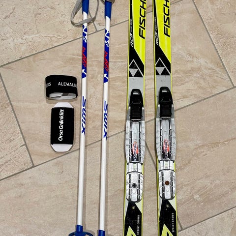 Klassiska längdskidor med ”fjäll” för barn, längd 101 cm. Bindningar SNS Profil.