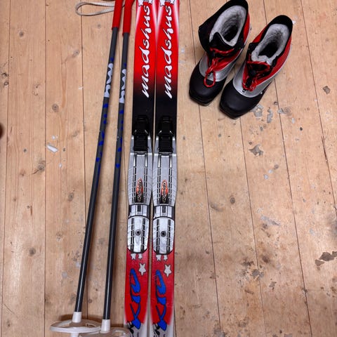 Salomon barn längdskidor med tillhörande Swix längdstavar och pjäxor.