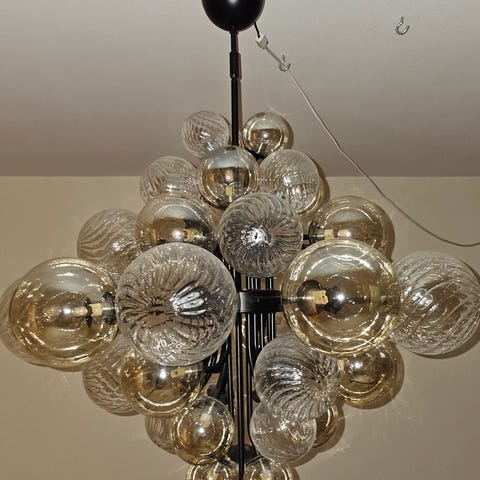 Taklampa säljes! Jättefin stor kottelampa köpt på Iems Väla. Ca 57 cm hög och 50 cm bred. Nyskick !