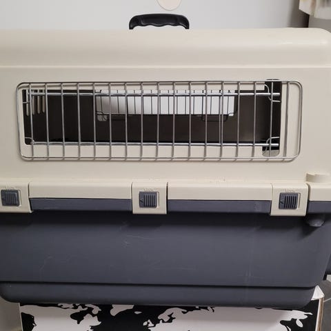 Ventilationsöppningar finns på sidor och baksida för god luftcirkulation. Ovansidan har bärhandtag för enkel transport. Passar för resor med bil eller kortare transporter av mindre sällskapsdjur.
