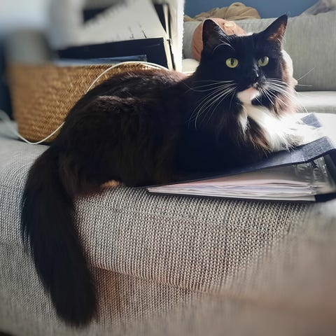 Morten är en svart och vit korthårig hankatt som älskar att bli klappad. Sitter någon av oss i soffan tar det inte många sekunder innan han har lagt sig till rätta i någons knä. Han kan inte få nog av kel helt enkel.