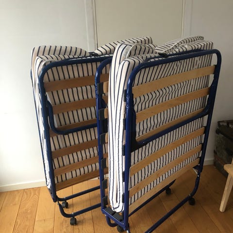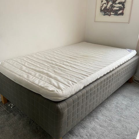 2 st IKEA sängbotten med ribbotten. Konstruktion i trä och metall med flera ribbor för att ge stöd åt madrassen. Passar som bas i sängram där måtten stämmer överens med sängbottens längd och bredd. Kan användas till enkelsäng eller som del i en dubbelsäng beroende på sängramens utformning.