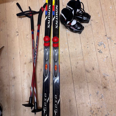 Längdskidor för barn, inkl pjäxor (stlk 29) o stavar