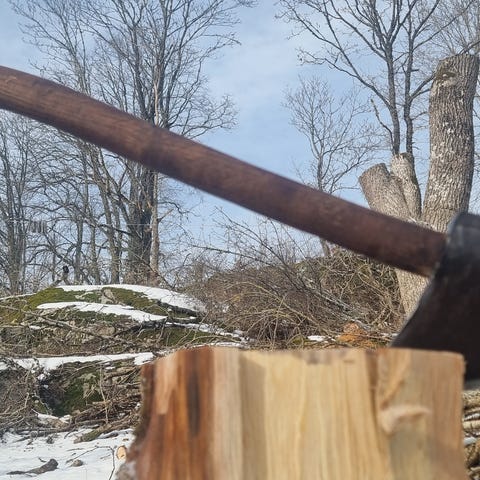 Extra förstärkt med stålhylsa på skaftet precis under yxhuvudet.