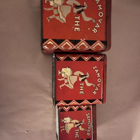 Superfräck gammal picknicklåda / smörgåslåda med bärhandtag, i plåt och med brickor. Unik och fin som dekoration också. 28x20x13,5cm.