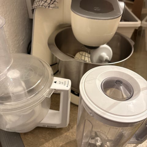 Köksassistent från Electrolux säljes. Mycket sparsamt använd och därför i fint skick. Originaltillbehör som ses på bild medföljer. i form av två bunkar, ballongvisp, degkrok och blandare samt stänkskyddande lock som passar bunken.