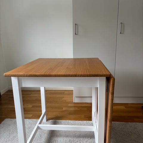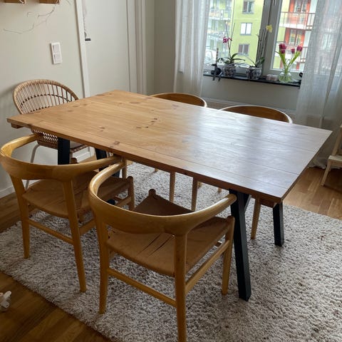 Svart klaffbord från ikea med två stolar som jag tror är från chili.