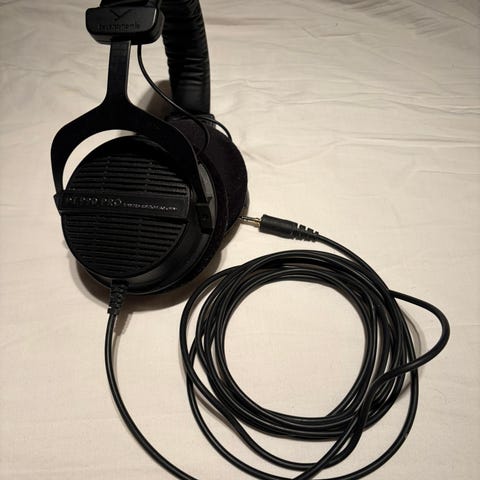 Hörlurarna är av Beyerdynamic DT 770 M, slutna over-ear-modeller med kabelanslutning. Fasta öronkåpor och vadderad huvudbygel i svart utförande. Modellen har impedans på 80 ohm enligt märkning på kåpan. Utrustade med fast kabel på 3m med 3,5 mm kontakt och inbyggd kontrollenhet på sladden. Lämpliga för användning med ljudinterface, mixerbord, dator eller annan utrustning med hörlursutgång med motsvarande kontakt.