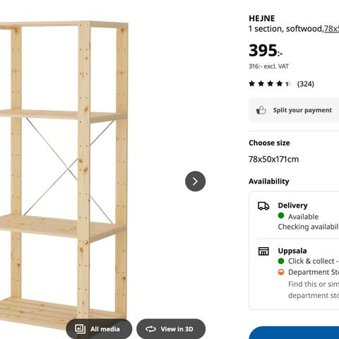 Säljer en snygg och tidlös hylla i ljust trä. Perfekt som förvaring i badrum, hall eller sovrum. Tar liten plats men rymmer mycket tack vare sina fem hyllplan.