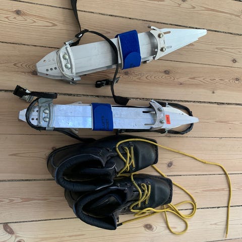 Skridskopaket långfärdsskridskor med kängor storlek 45 och stavar/ispik.