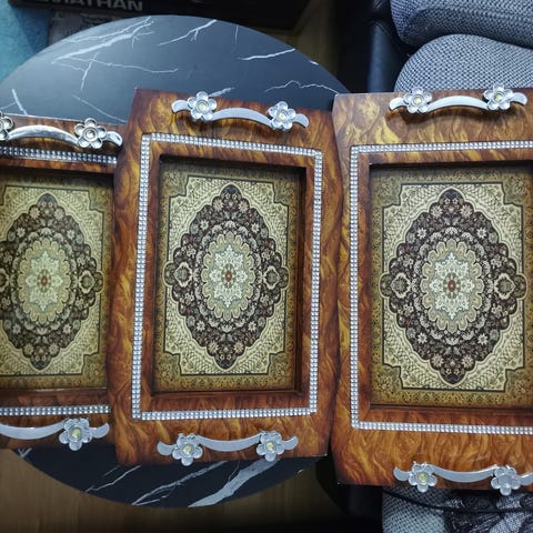 Jätte snyggt tapas set med tre skålar i fina färger, på en serveringsbricka.