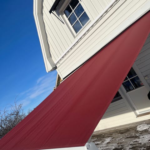 Markis med frontskydd för altan