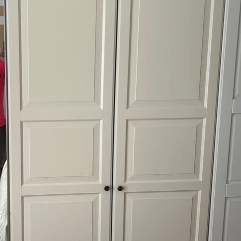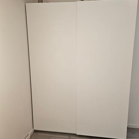 Fin garderob enbart några månader gammal. Se måtten i bilderna. Har en extra skruv som förstärkning på vänstra sidan då det gled ut vid monteringen. Annars superfin utan några skavanker. Behöver sälja den innan tisdagen då jag flyttar. Snabb upphämtning prioriteras!