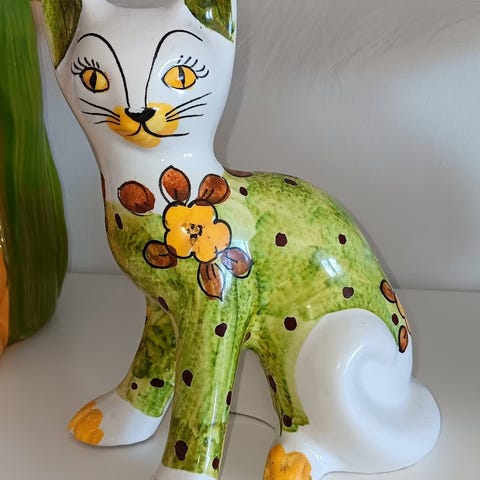 Katt från Rosa Ljung ,prydnadsfigur vit med lila blommor