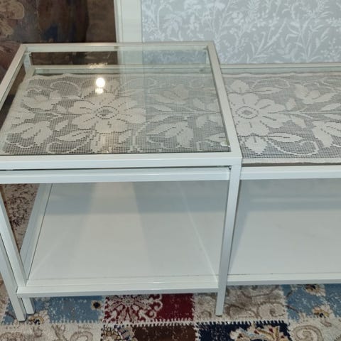 Soffbord i vitt med kromad stomme – säljes