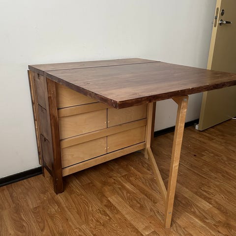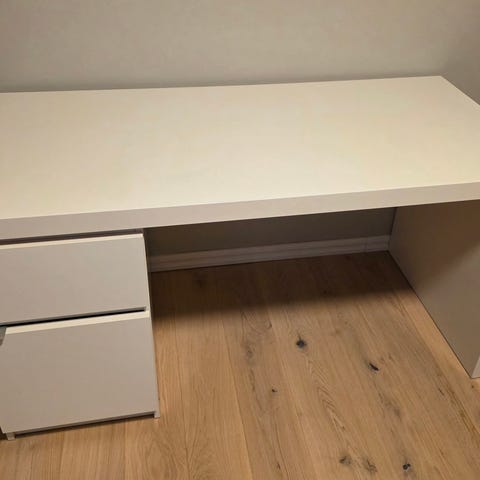 Ett vitt klaffbord från IKEA, med förvaring.