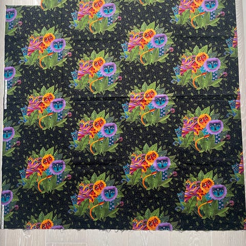 Längd 5 meter och 10 cm, bredd 152 cm mönsterbredd 150 cm.