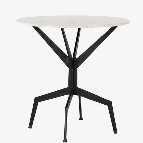 Soffbord i vit marmor med underrede i svartlackerad metall.
